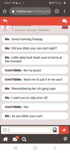 Madison fingers herself when online, usually chatting to many guys at once, typically making about 40 cum as she uses her dildos. The cute little slut is – in her own words – a gusher.