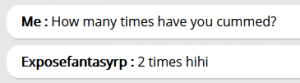 Me : Round 3: Most guys you had at once. Spit Roast, gang bang?