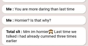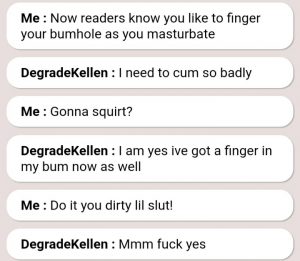 Me : And now I may well post that you are finger fucking and begging for permission to orgasm