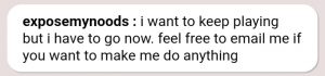 (Sent immediately with no hesitation. Great picture. My cock went up faster than the space shuttle!)