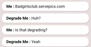 Me : Do you get turned on being degraded?